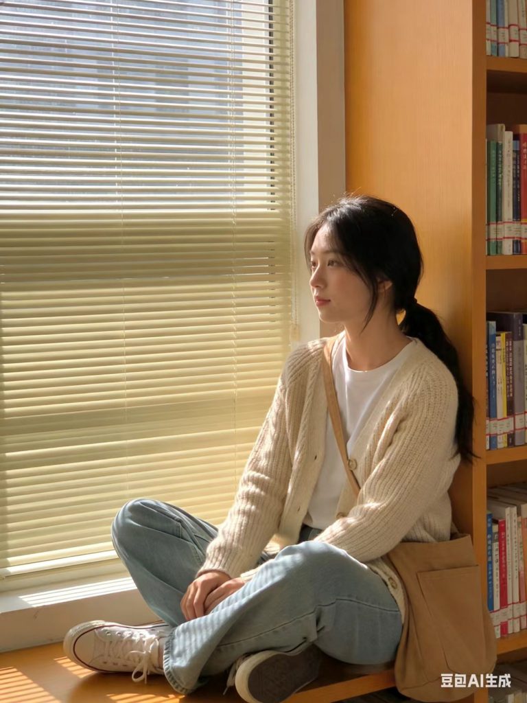 画室门口回眸,复古穿搭文艺灵动