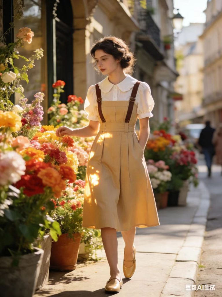 娃娃领短款衬衫搭配高腰背带连衣裙,甜美又可爱,浅口小皮鞋精致优雅,在鲜花街头漫步,温柔又浪漫,轻松化身法式电影女主角。